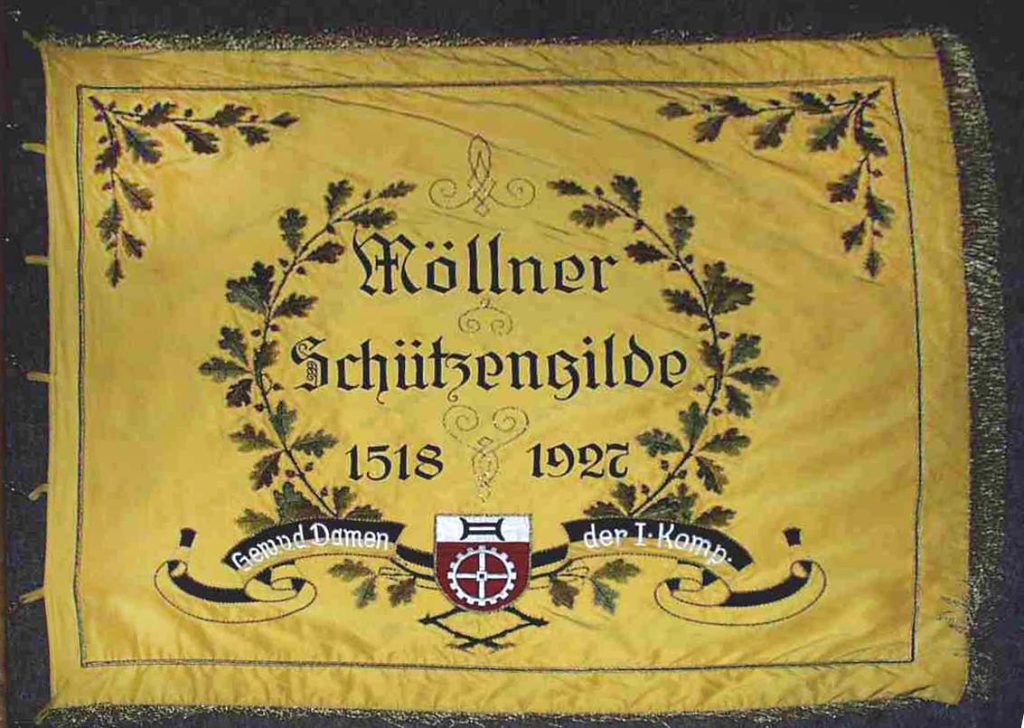 Ein weisses Einstecktuch sowie eine rote Rose in der Brusttasche gehören ebenso dazu, wie das auf die Brusttasche aufgenähte Wappen der Möllner Schützengilde von 1387 e.V.